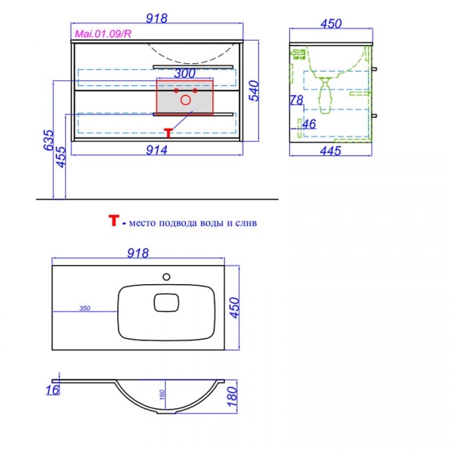Тумба с умывальником AQWELLA MIAMI 90 правая Mai.01.09/R