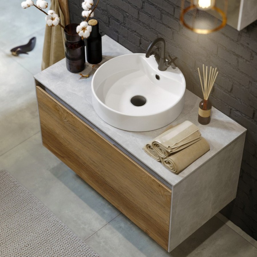 Тумба с умывальником AQWELLA MOBI 100 дуб балтийский/бетон светлый MOB0110DB+MOB0710BS