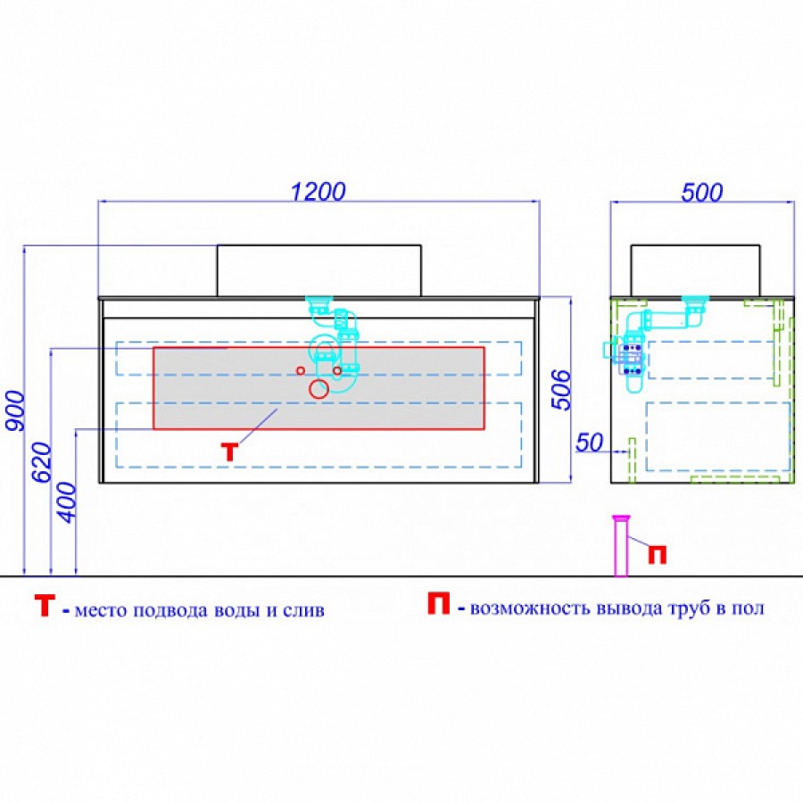 Тумба с умывальником AQWELLA MOBI 120 дуб балтийский MOB0112DB+MOB0712DB