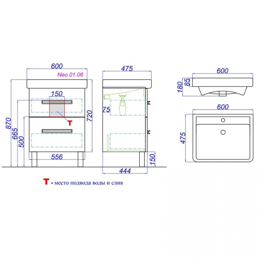 Тумба с умывальником AQWELLA Нео 60 напольная Neo.01.06