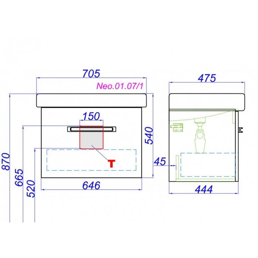 Тумба с умывальником AQWELLA Нео 70 подвесная Neo.01.07/1