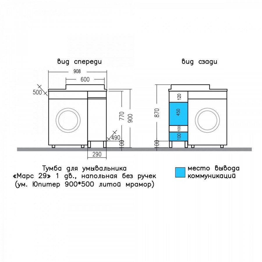 Напольная тумба под раковину над стиральной машиной "Марс 29" от российского бренда СанТа. Корпус изделия выполнен из влагостойкого ЛДСП , фасад из МДФ. У тумбы Марс 29 Янтарная дверка универсальная, петли могут быть как слева, так и справа. Кронштейны в комплект не входят, приобретаются отдельно.