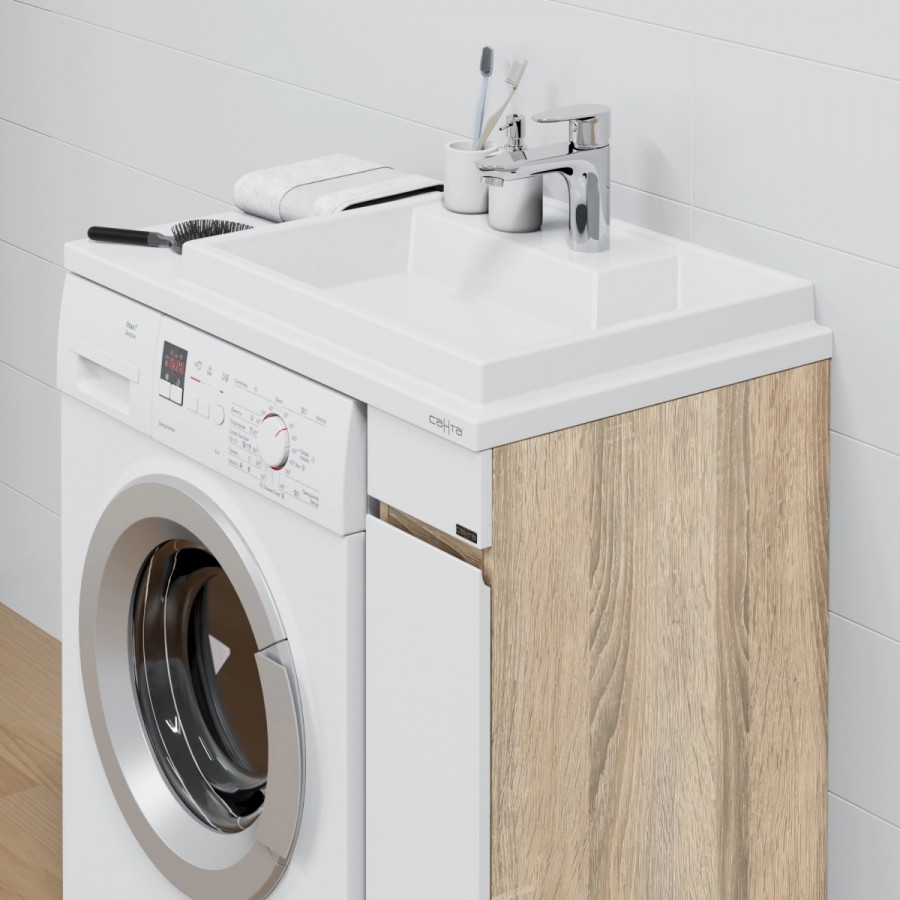 Тумба с умывальником над стиральной машинкой СанТа Марс 90 янтарная, правая