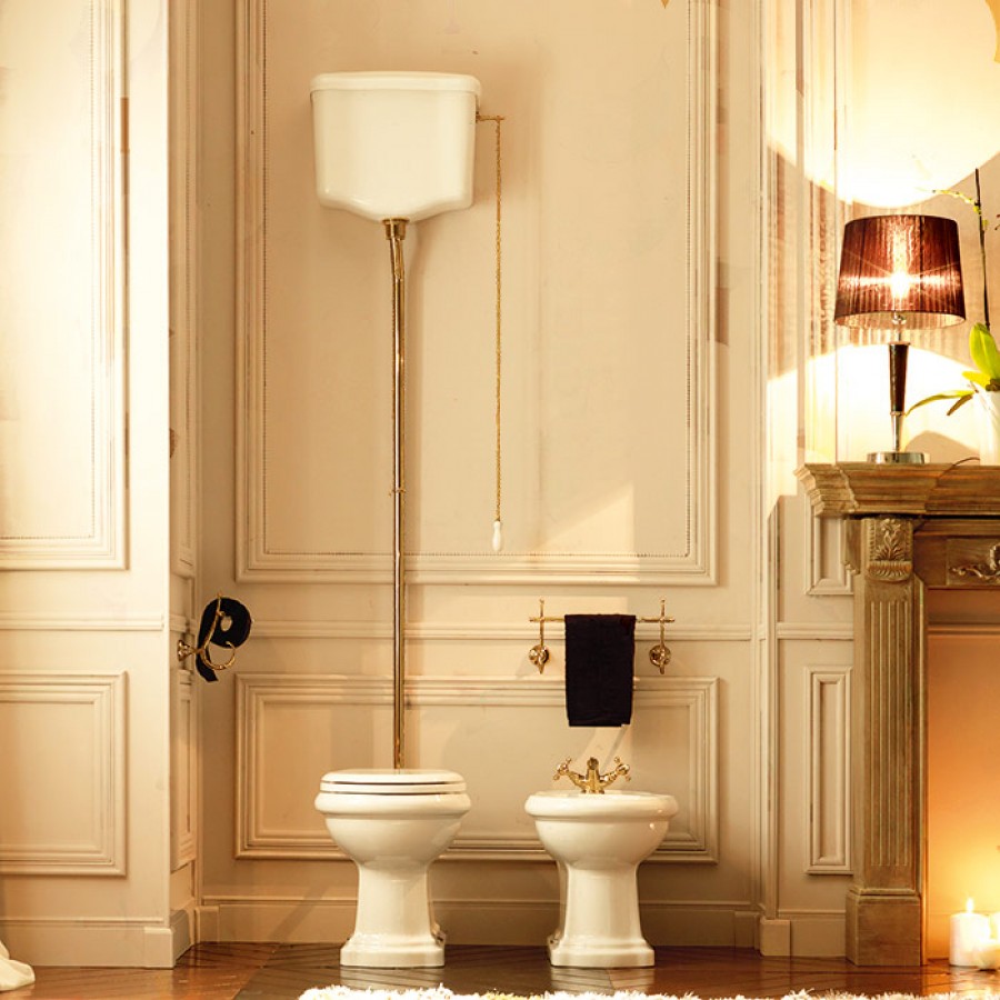 Унитаз Kerasan Retro 101001 с высоким бачком, бронза (слив в пол)