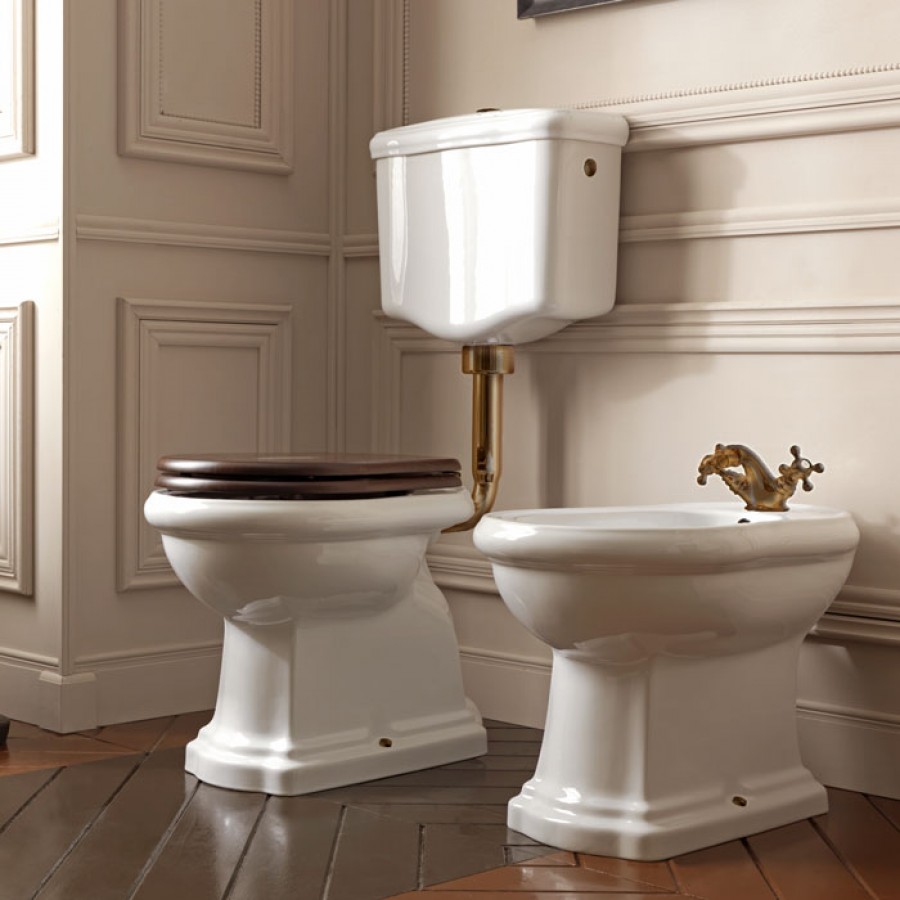 Унитаз Kerasan Retro 101001 со средним бачком с кнопкой, бронза (слив в пол)