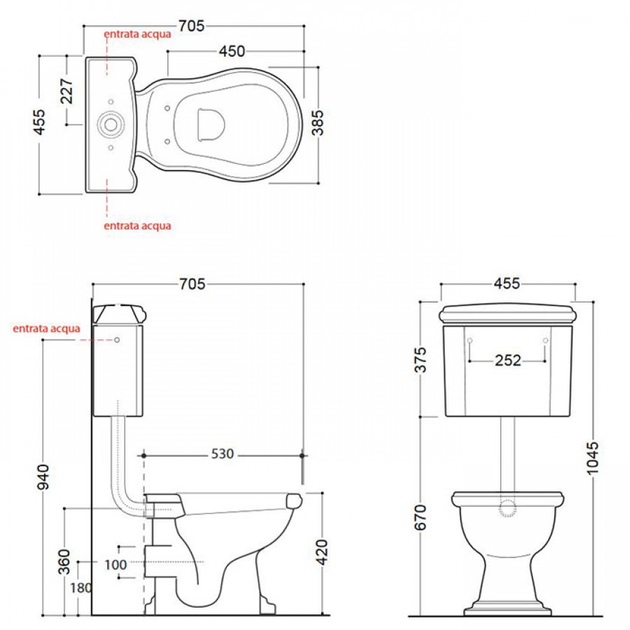 Унитаз Kerasan Retro 101101 со средним бачком с кнопкой, бронза (слив в стену)