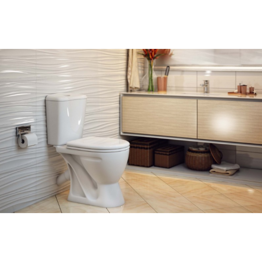 Унитаз-компакт Rosa Поло. Система антивсплеск и антибактериальное покрытие сидения с функцией плавного закрытия создает ощущение комфорта, которое дарит белоснежный блеск качественного сантехнического фарфора.