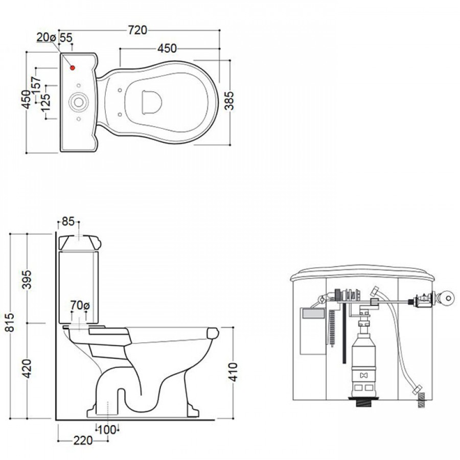 - Бачок для унитаза моноблок Retro 1012/1013, с боковым отверстием для ручки механизма арт. 107101