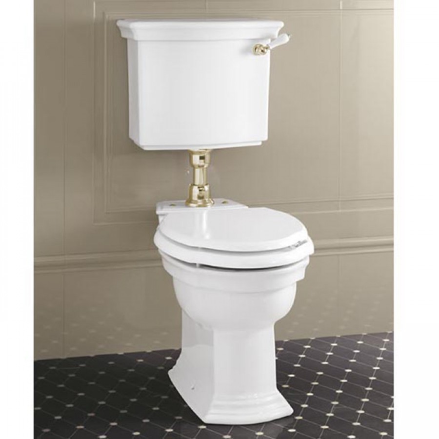 Унитаз напольный с низким бачком Devon&Devon Westminster (фурнитура светлое золото). Квинтэссенция классицизма, навеянная чистейшим британским стилем, у унитаза с низким бачком из тонкого белого фарфора. Комбинируется с большой коллекцией сидений из разных материалов и цветов.