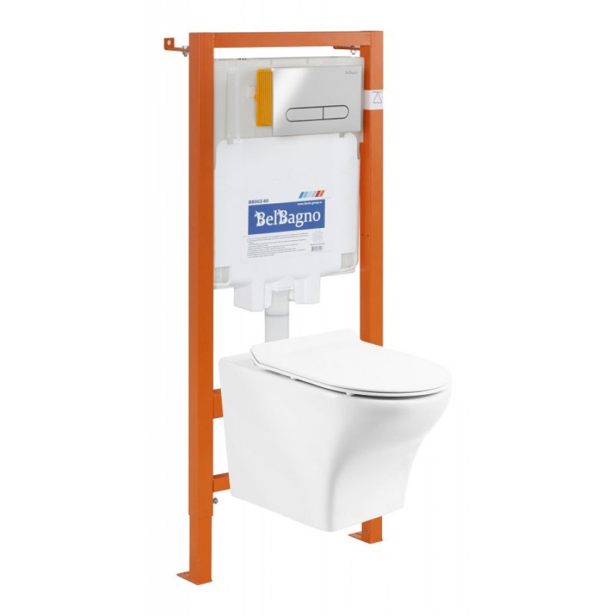 - Унитаз подвесной безободковый с креплением BelBagno Kraft BB064CHR