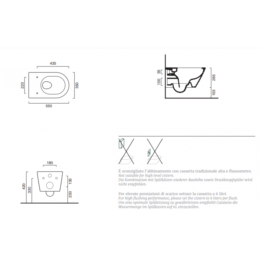 Унитаз подвесной Catalano Colori 55 1VS55RZEBM безободковый. Унитазы Catalano имеют особое эмалированное покрытие, которое придает износостойкость и устойчивость к повреждениям, что гарантирует исключительные результаты: поверхность не портится, имеет длительный срок эксплуатации, сохраняет первоначальный блеск.