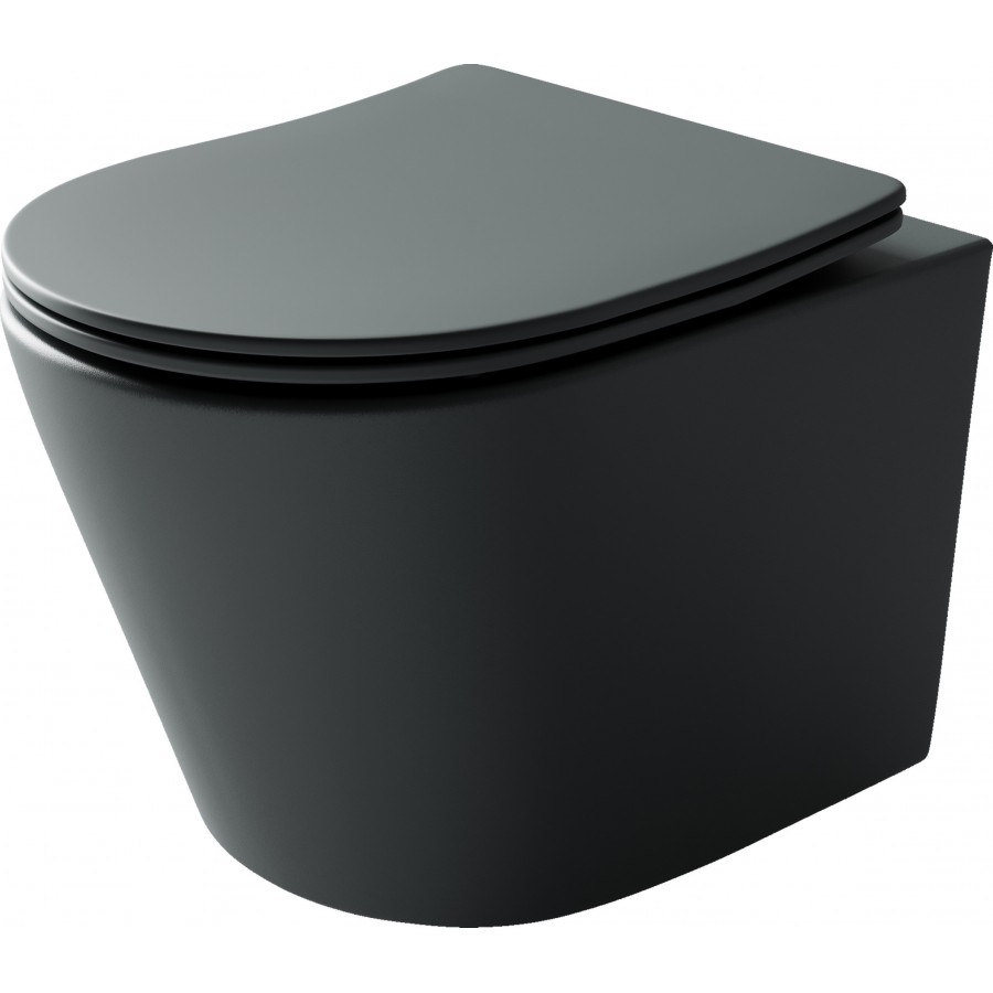 Унитаз подвесной Ceramica Nova Balearica Rimless CN6000MDH темный антрацит матовый. Конструкция безободкового унитаза упрощает процесс уборки и повышает гигиеничность. Крышка-сиденье легко снимается, обеспечивая удобный уход. Форма воронки унитаза предотвращает образование брызг.