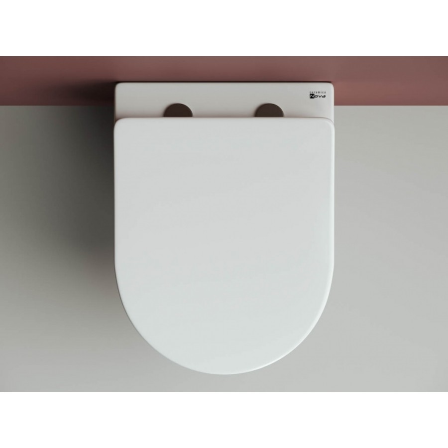 Унитаз подвесной Ceramica Nova Forma Rimless CN3009. Конструкция безободкового унитаза упрощает процесс уборки и повышает гигиеничность. Крышка-сиденье легко снимается, обеспечивая удобный уход. Форма воронки унитаза предотвращает образование брызг.