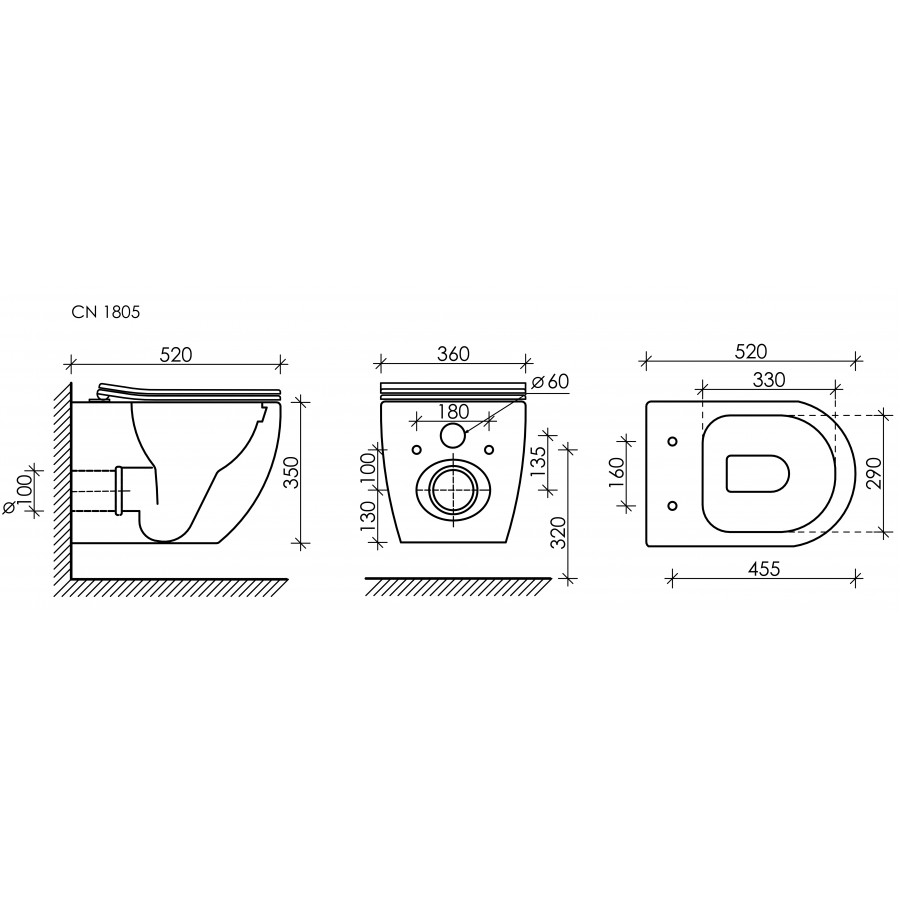 Унитаз подвесной Ceramica Nova Mia Rimless CN1805. Конструкция безободкового унитаза упрощает процесс уборки и повышает гигиеничность. Крышка-сиденье легко снимается, обеспечивая удобный уход. Форма воронки унитаза предотвращает образование брызг.