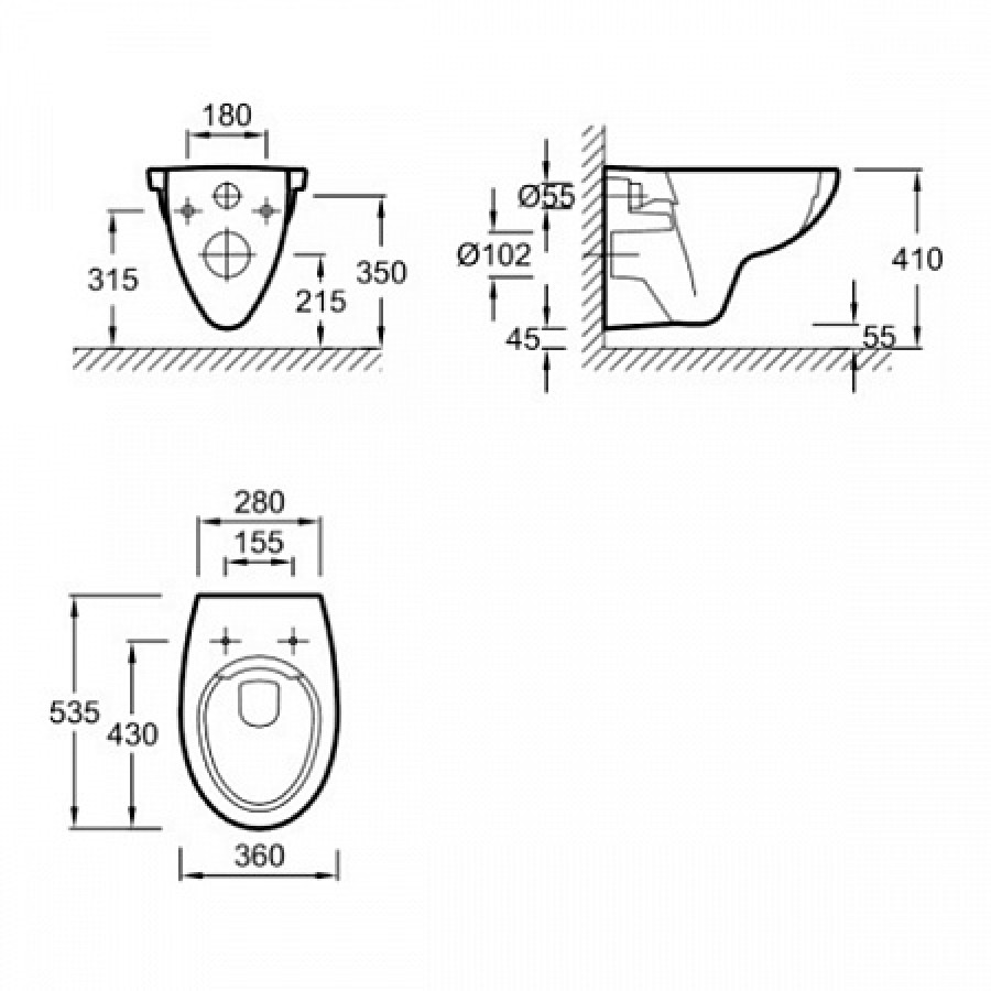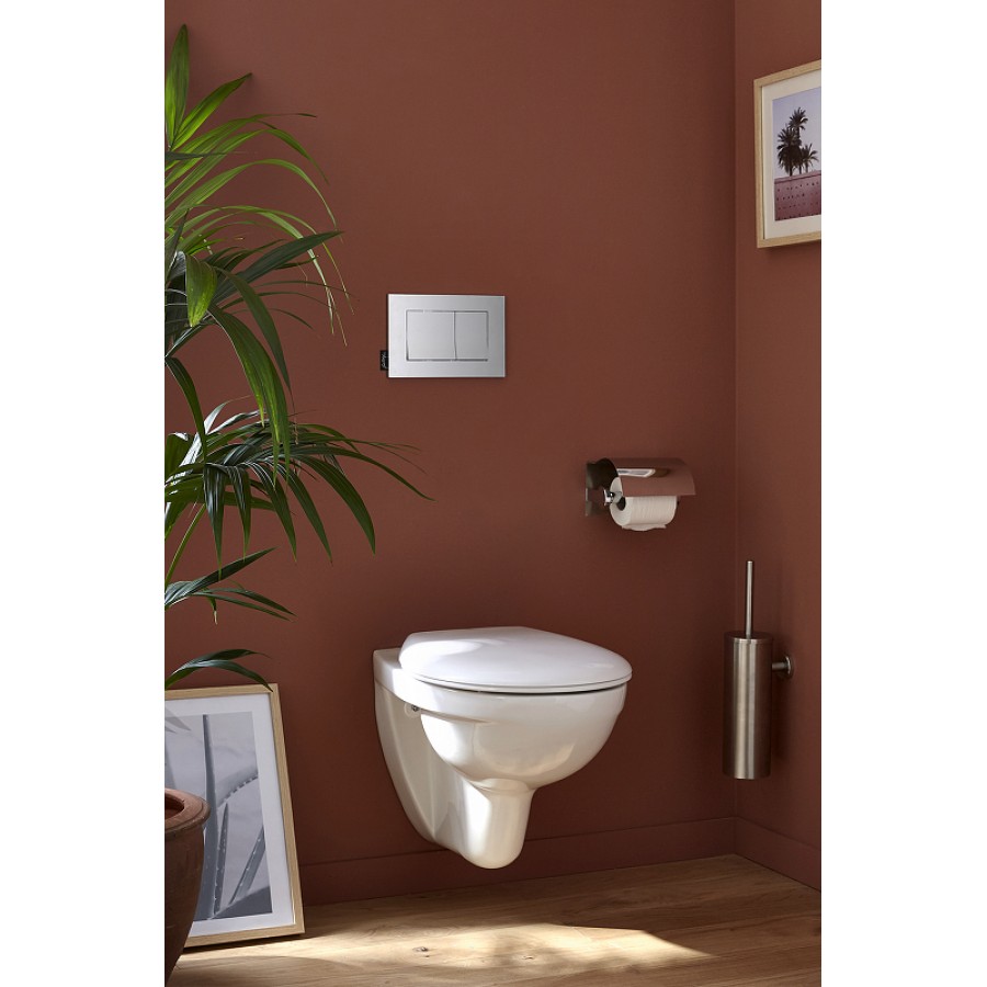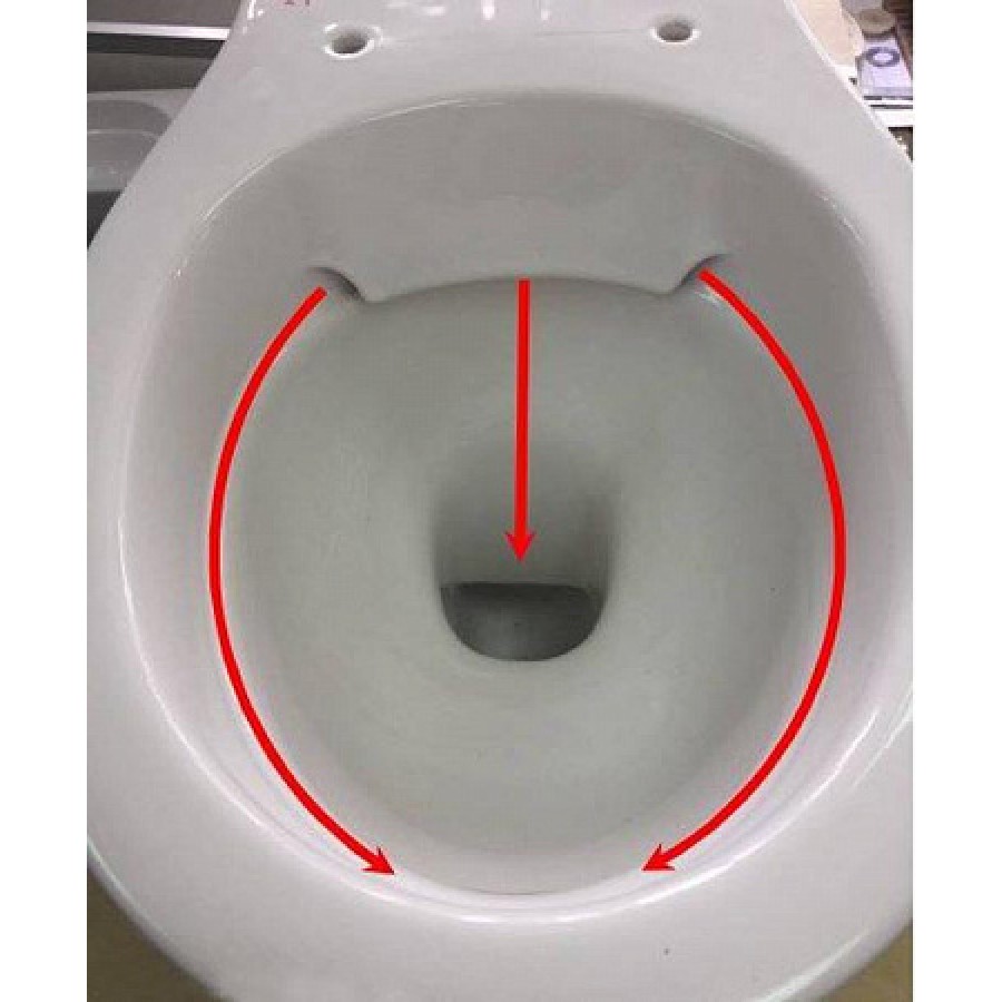 - Форма воронки унитаза предотвращает образование брызг