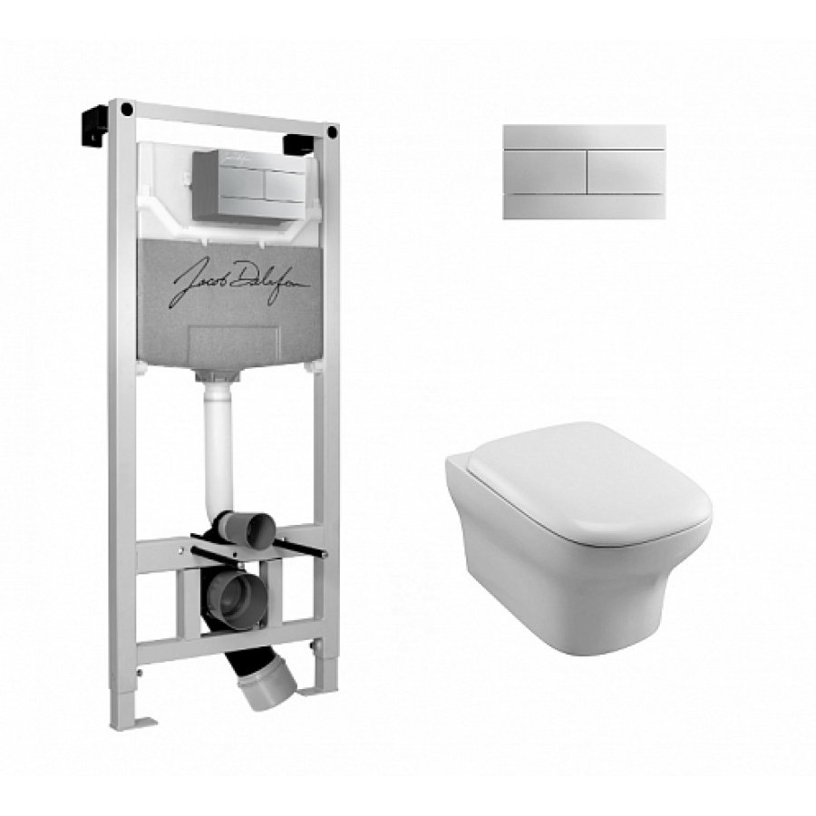 - Комплект Jacob Delafon с инсталляцией E5504-NF кнопка смыва E4316-CP хром, подвесным унитазом Vox EDM102-00 с крышкой-сиденьем E20142-00 микролифт