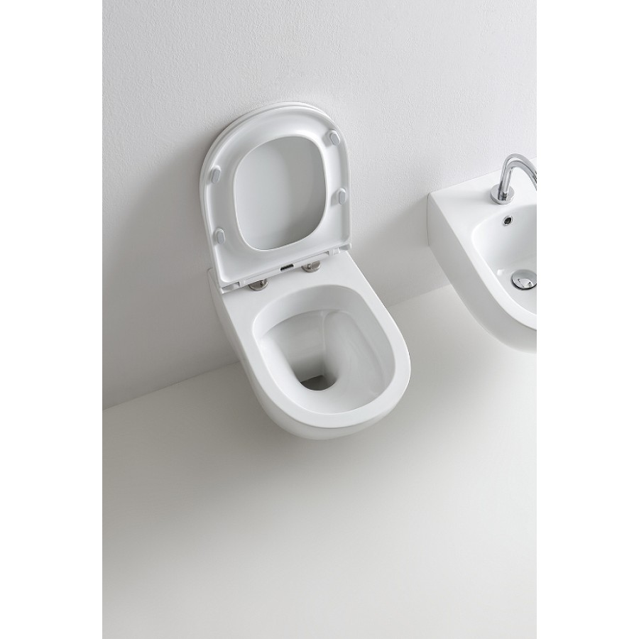 Унитаз подвесной Kerasan Aquatech 371401 безободковый, с микролифтом. Ультрамодный дизайн унитаза: с первого взгляда покоряет природными формами и гармоничными пропорциями в сочетании с динамичностью линий. Удивительно долговечный механизм рассчитан на 100 000 закрываний, материал Дюропласт устойчив к появлению царапин, а крепления из нержавеющей стали прослужат не менее 10 лет.