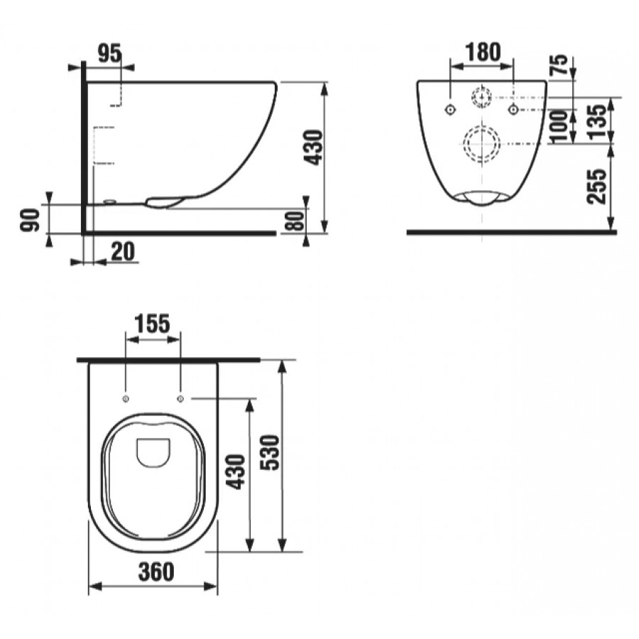 - Унитаз подвесной Laufen Basal Combipack 8.66E1.0.000.000.1 безободковый