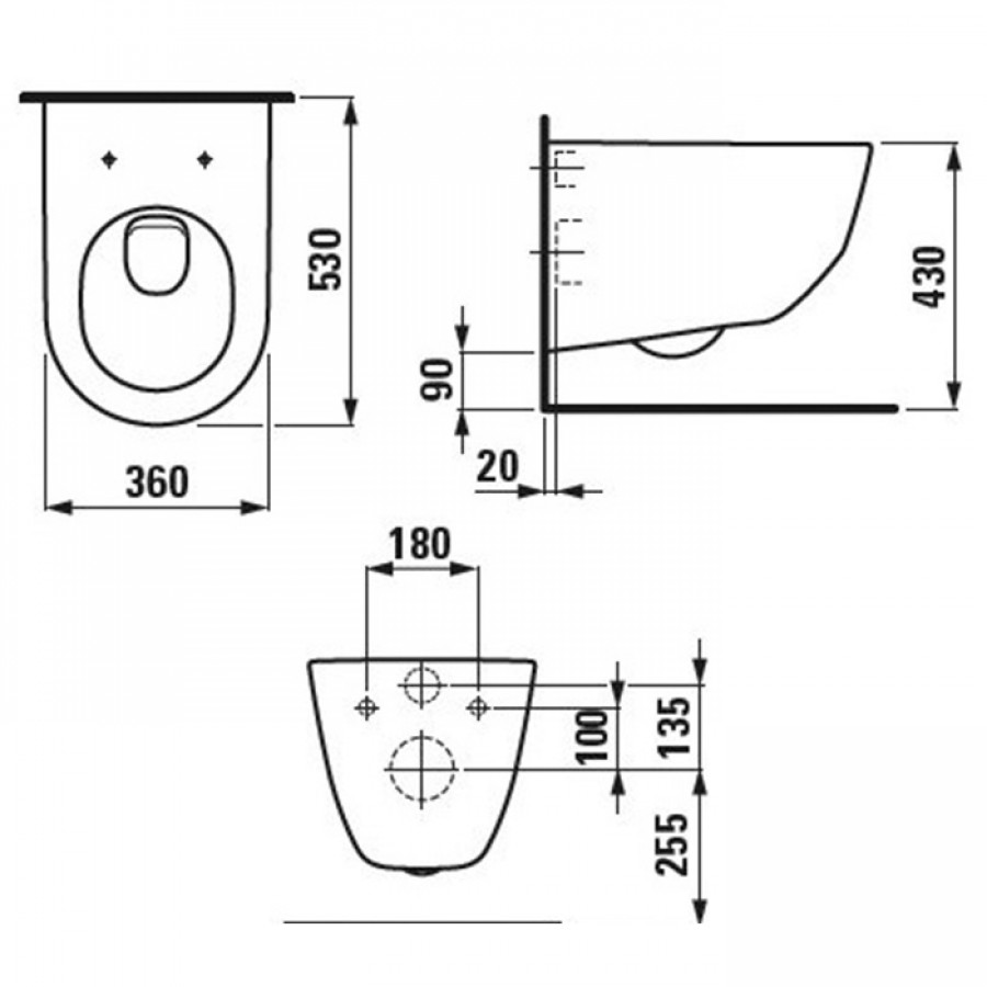 - Унитаз подвесной Laufen Pro 8.2096.6.000.000.1 безободковый