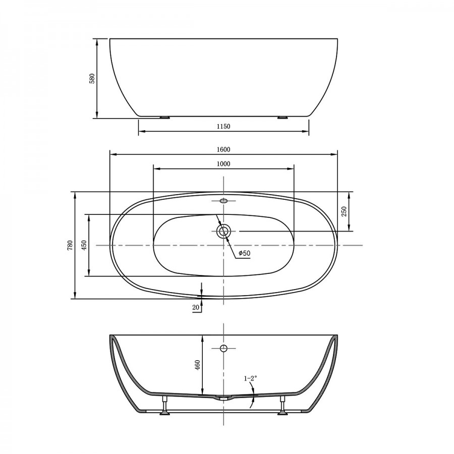 Ванна акриловая Vincea VBT-405-1600, 160x78, цвет белый, слив-перелив в комплекте, хром
