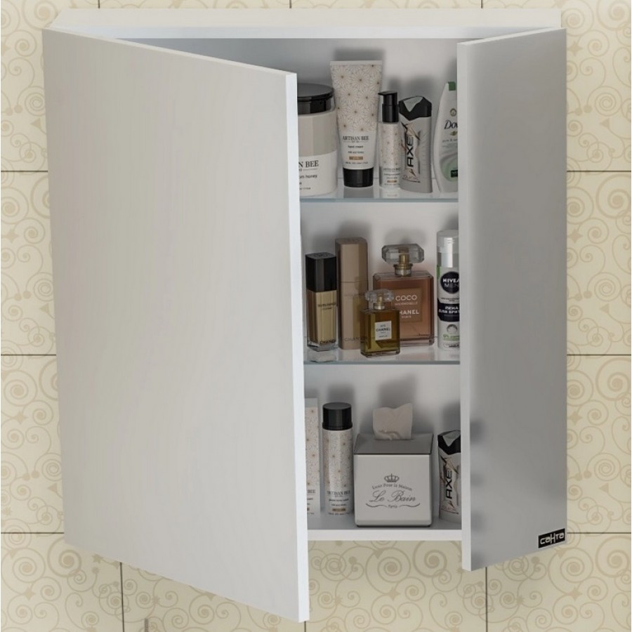 Настенный зеркальный шкаф СанТа Стандарт - модель для ценителей функциональности и стиля. Три закрытые секции организуют безопасное и удобное хранение средств гигиены, косметики, лекарств. Дверцы оснащены доводчиками, а это значит нет захлопыванию створок, и возможных повреждений фасада. Прочная ДСП для корпуса и зеркальное полотно обладают водоотталкивающими свойствами. Зеркало украшено фацетной огранкой и оборудовано верхней подсветкой.