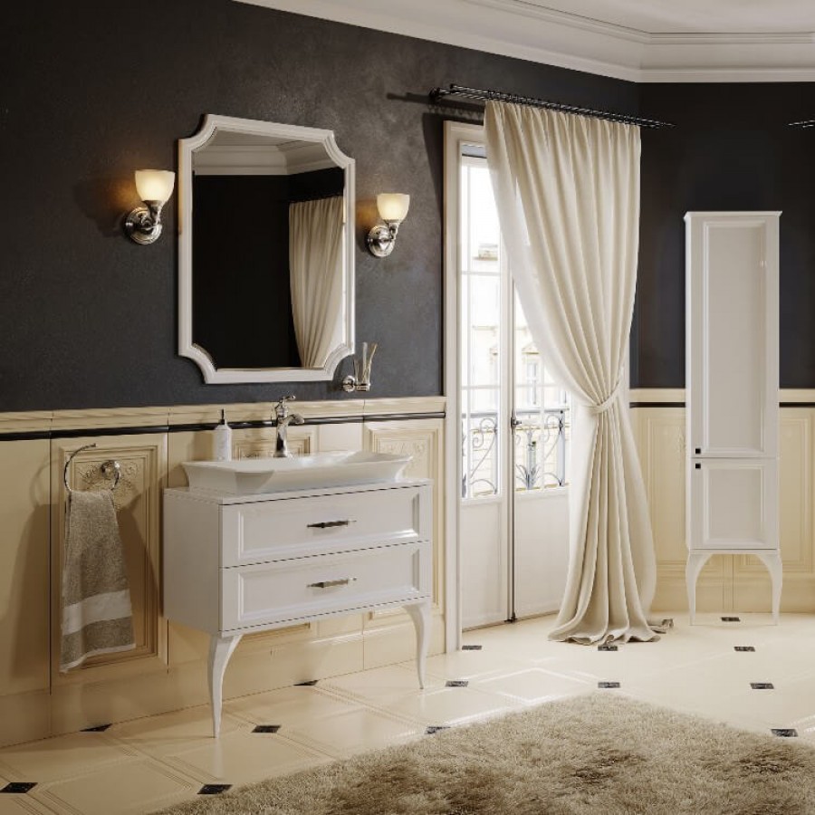 Зеркало Aqwella La Donna 72 имеет превосходный классический ретро-дизайн, однако он великолепно сочетается с современным интерьером. У зеркала криволинейная форма с фацетом по краю с серебрянной амальгамой. Материал изготоления: высококачественный МДФ и влагостойкое стеклянное полотно.