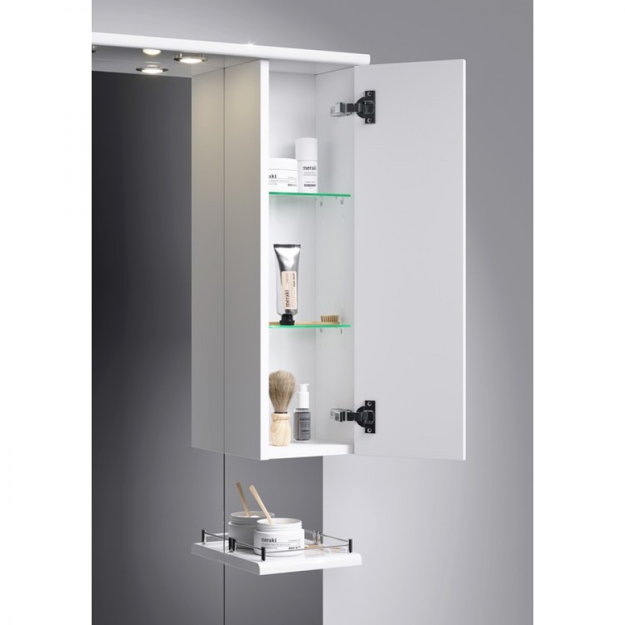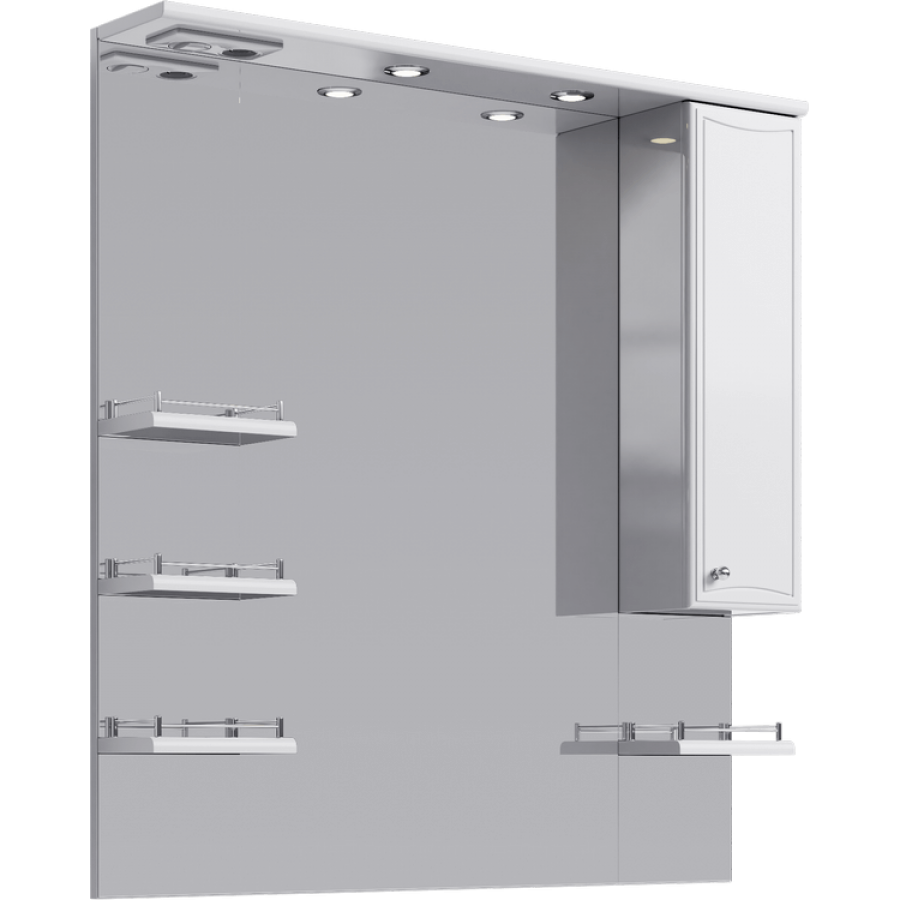 Зеркало-шкаф Aqwella Барселона 100 оборудовано полочкой, шкафчиком, а также светодиодной подсветкой, выключателем и розеткой. Фасады коллекции Барселона производятся из МДФ (древесноволокнистой плиты повышенной плотности) и покрыты 5-ю слоями белой глянцевой эмали. Боковины из ЛДСП (древесностружечной плиты повышенной плотности) также окрашены.