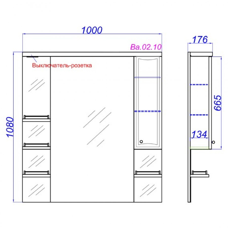 Зеркало со шкафчиком Aqwella Барселона 100 Ba.02.10